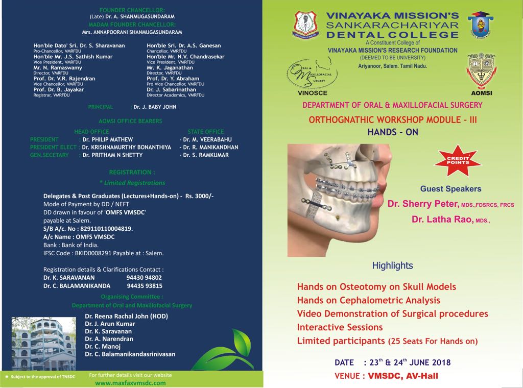 Orthognathic workshop to be held at VMSDC, Salem on June 23& 24