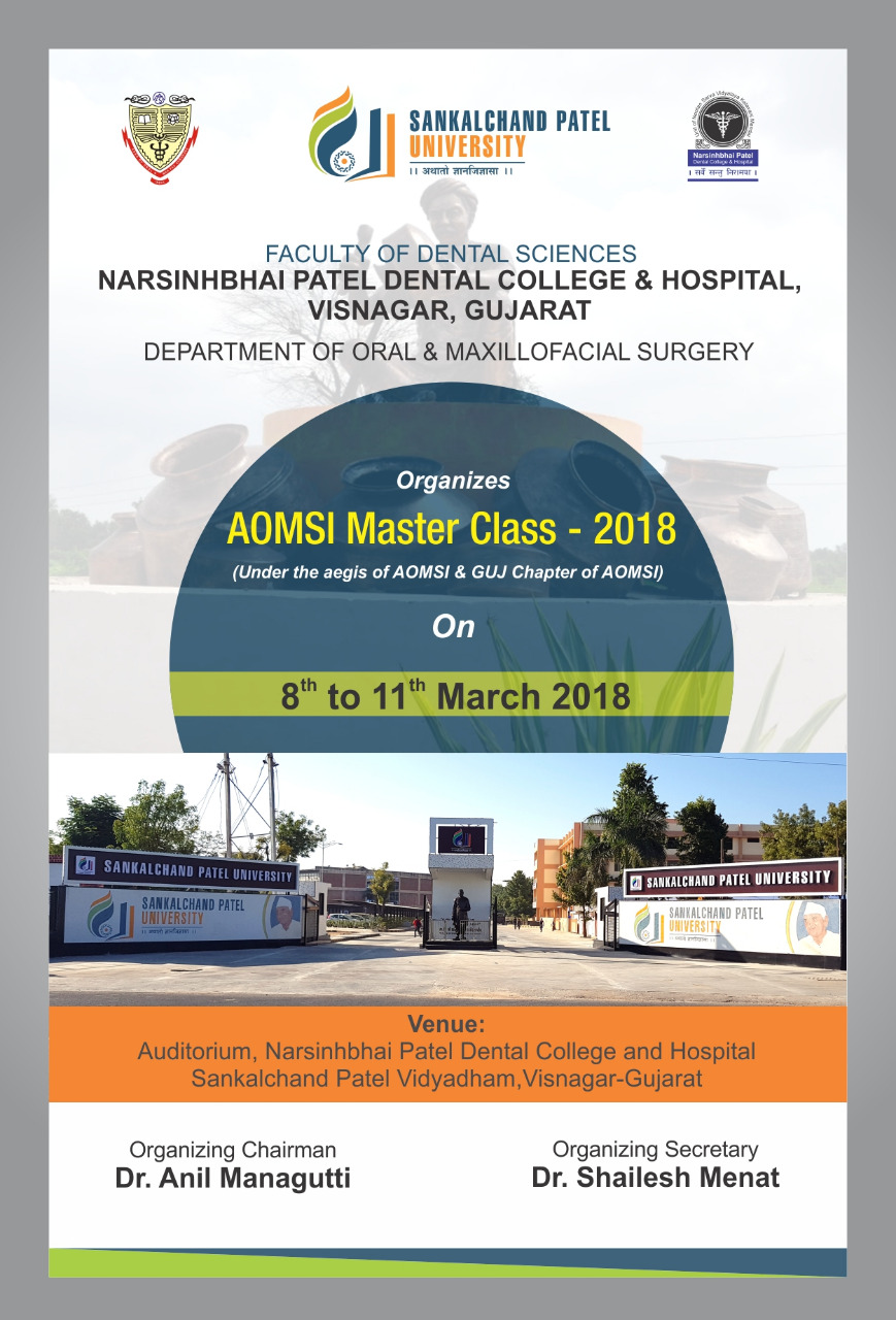 AOMSI Master Class Gujarat- 2018 Venue : Auditorium,Narsinhbhai Patel Dental College and Hospital Sankalchand Patel Vidyadham,Visnagar-Gujarat